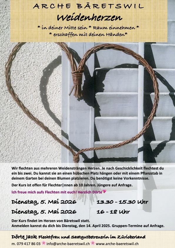Wir flechten aus mehreren Weidensträngen Herzen.
